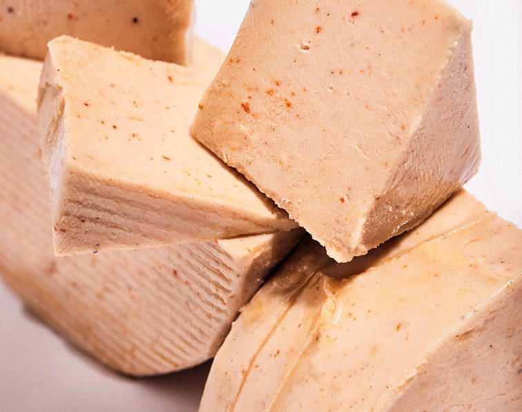 O interior mantém-se suave e cremoso, enquanto a maturação cria uma ligeira crosta natural. A cayena adiciona um toque picante que realça o sabor rico do fermentado, tornando-o perfeito para quem gosta de alternativas vegetais com mais personalidade