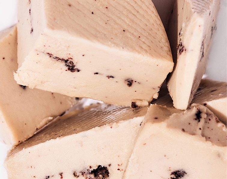 Alternativa vegetal semicurada aromatizada com pimenta rosa, produzida artesanalmente a partir de caju fermentado. Textura cremosa no interior, crosta de maturação natural e um sabor intenso com notas ligeiramente picantes, doces e cítricas. Ideal para tábuas vegan, saladas ou sanduíches gourmet.